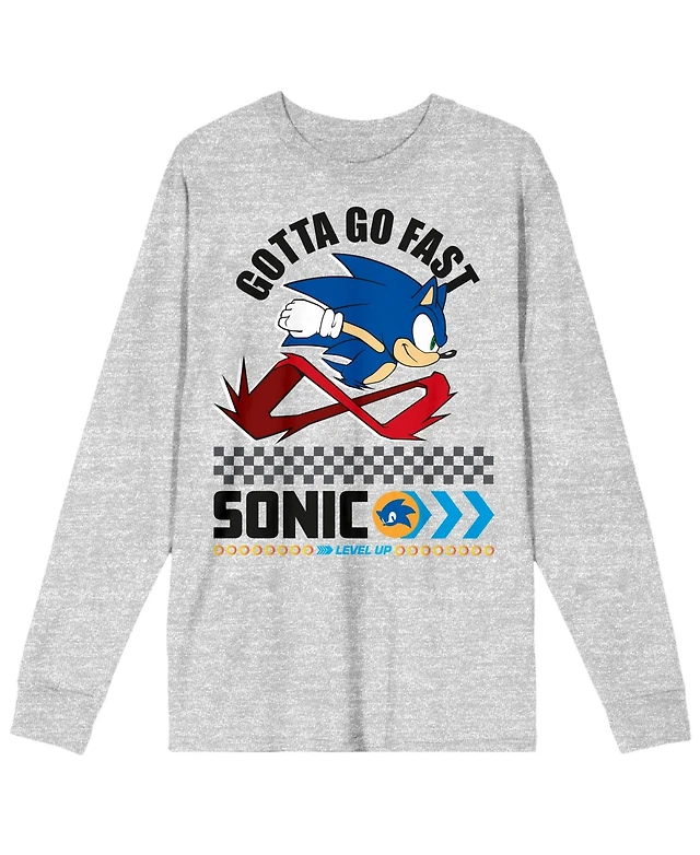 Sonic The Hedgehog Men's Modern Gotta Go Fast Crew Neck Long Sleeve Athletic Heather Adult Tee-Large