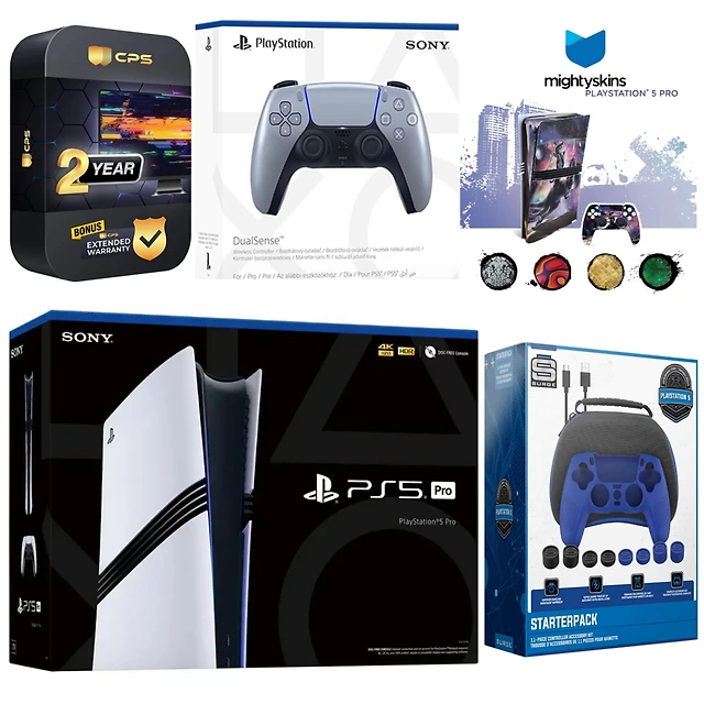 Sony Playstation 5 Pro Bundle with White Pulse Headset, Extra Controller, Pro Gamer Kit, Dual Charge Dock and MightySkins Decal Voucher Plus 2 Year Cp