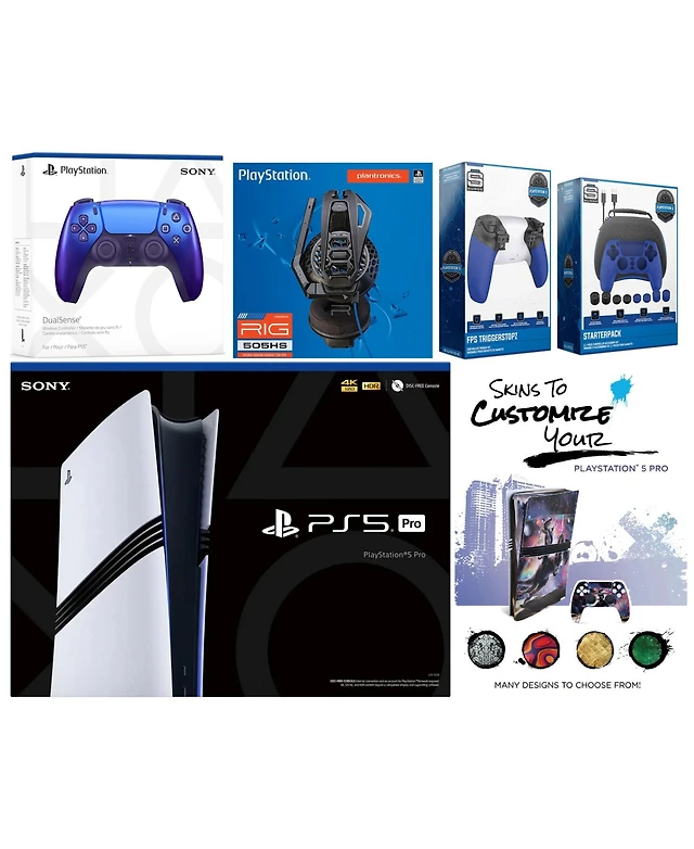 Sony Playstation 5 Pro Bundle with ExtraController, Plantronics Headset, Gamer Kit, Trigger Kit and MightySkins Decal Voucher Plus 2 Year Cps Exte