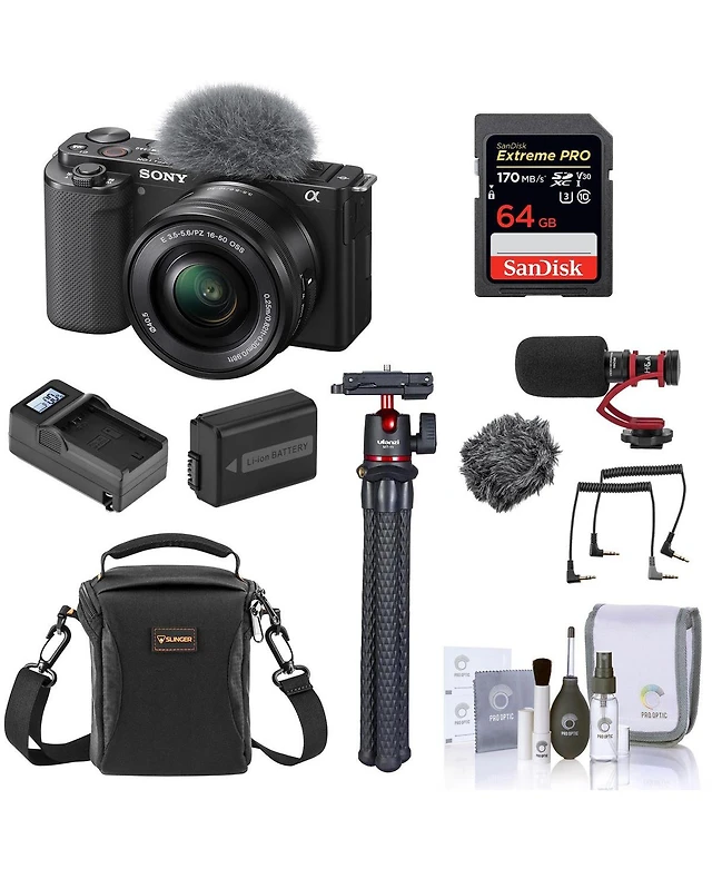 Sony Sony Zv-E10 Mirrorless Vlog Camera with 16-50mm Lens, Black - Bundle with Vlogger Accessory Kit, Shoulder Bag, Screen Protector, Extra Battery,