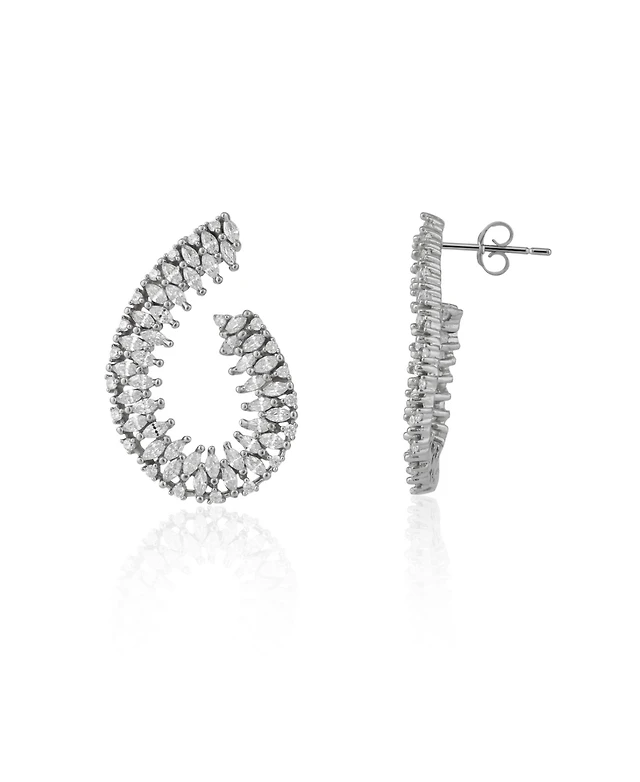 Sterling Silver Pave Spike Rhombus Drop Earrings