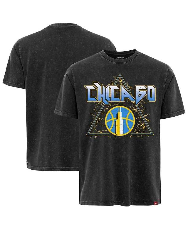 Sportiqe Men's and Women's Black Chicago Sky Rock Roll Collection Angus Mineral Wash Premium T-Shirt