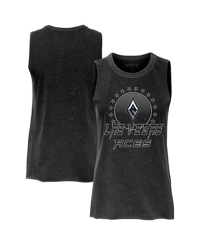 Sportiqe Women's Black Las Vegas Aces Rock Roll Collection Turner Mineral Wash Tank Top