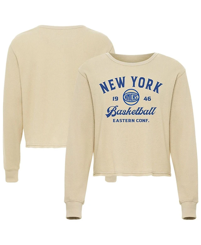 Sportiqe Men's and Women's Cream New York Knicks High Country Collection Cullen Waffle Knit Long Sleeve T-Shirt
