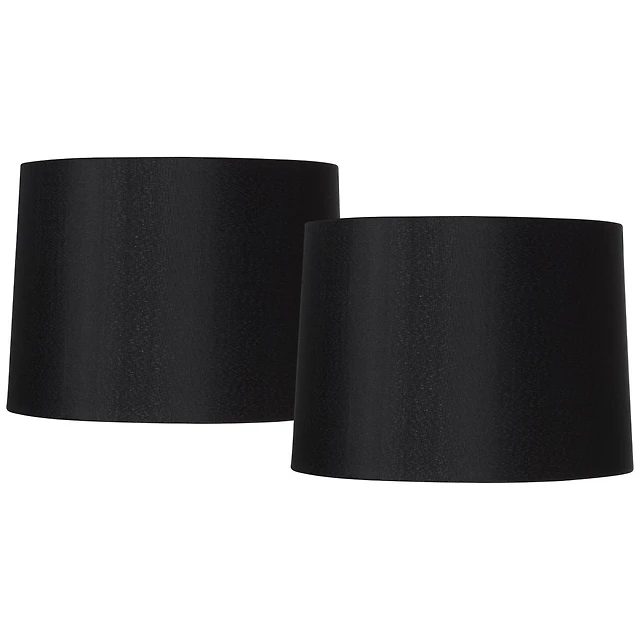 Springcrest Set of 2 Black Medium Hardback Tapered Drum Lamp Shades 13" Top x 14" Bottom x 10.25" High (Spider) Replacement with Harp a