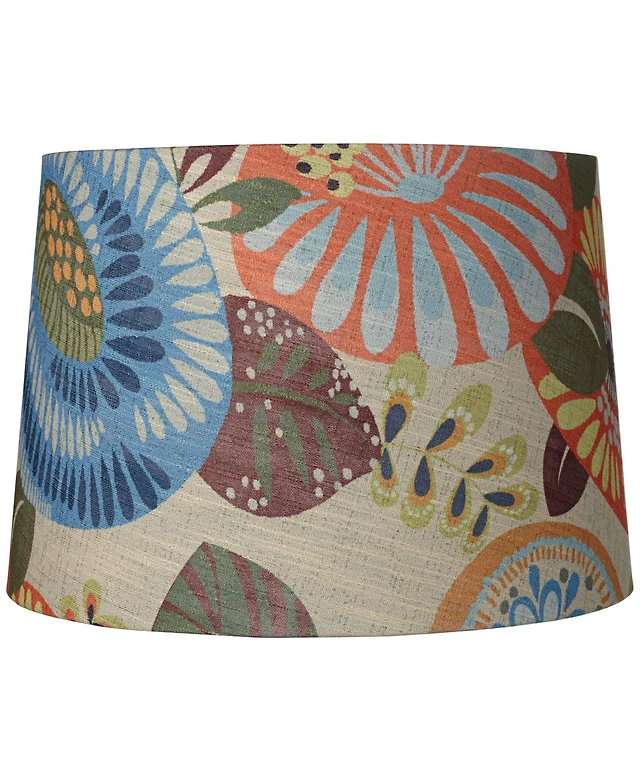 Springcrest Collection Set of 2 Drum Lamp Shades Multi Color Tropic Floral Medium 14" Top x 16" Bottom x 11" Slant Spider with Harp and