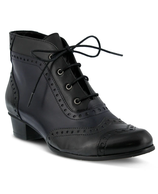 Azura Spring Step Heroic Colorblock Leather Bootie with Brogue Detailing and Inside Zipper