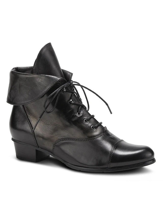 Spring Step Galil Polished Leather Lace-Up Bootie with Fold-Over Cuff and Stacked Heel