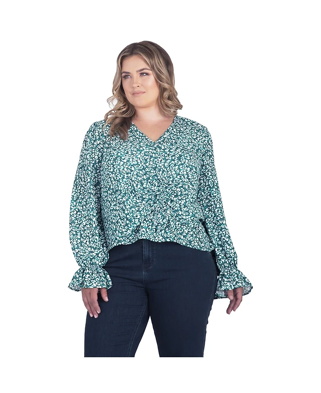 Plus Women's Long Flute Sleeve V-Neck Blouse Tops