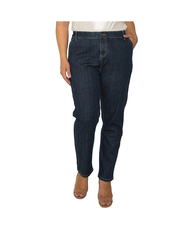 Standards & Practices Women's Elastic Waist High Rise Slim Straight Denim Jeans