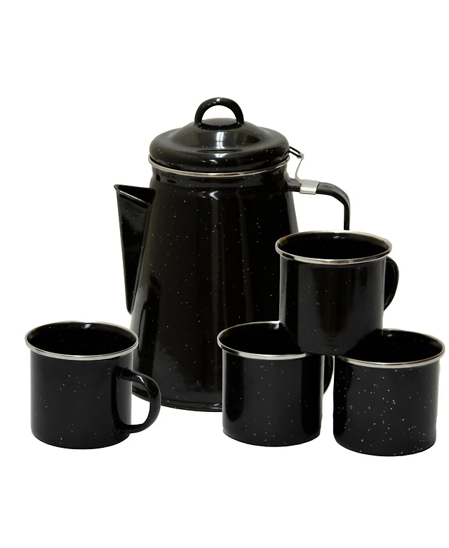 Stansport Enamel Percolator Coffee Pot & 4 Mug Set