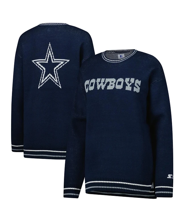 Starter Women's Navy New York Yankees Power Play Cropped Pullover Sweatshirt