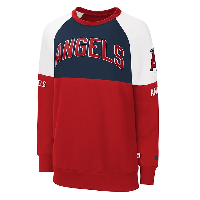 Women's Starter Red/Navy Los Angeles Angels Baseline Raglan Pullover Sweatshirt