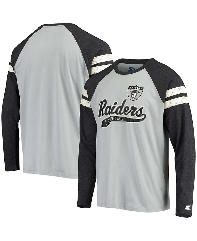Men's Silver and Black Las Vegas Raiders Throwback League Raglan Long Sleeve Tri-Blend T-shirt