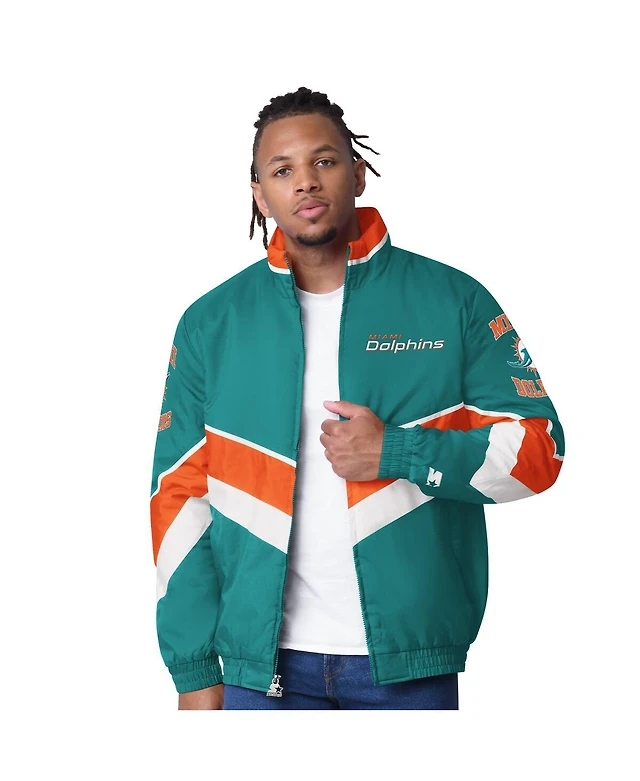 Starter Men's Aqua Miami Dolphins Captain Satin Varsity Jacket