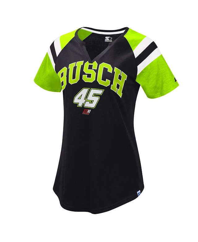 Women's Starter Black, Green Kurt Busch Game On Notch V-Neck T-shirt
