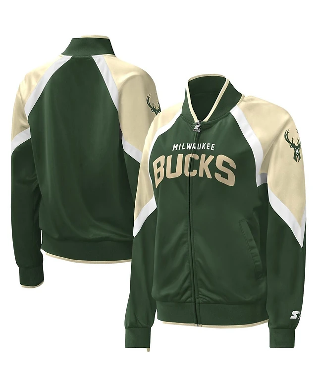 Women's Starter Hunter Green Milwaukee Bucks Slam Dunk Raglan Full-Zip Track Jacket