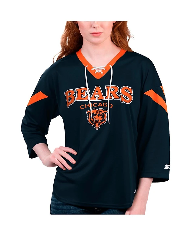 Women's Starter Navy Chicago Bears Rally Lace-Up 3/4 Sleeve T-shirt