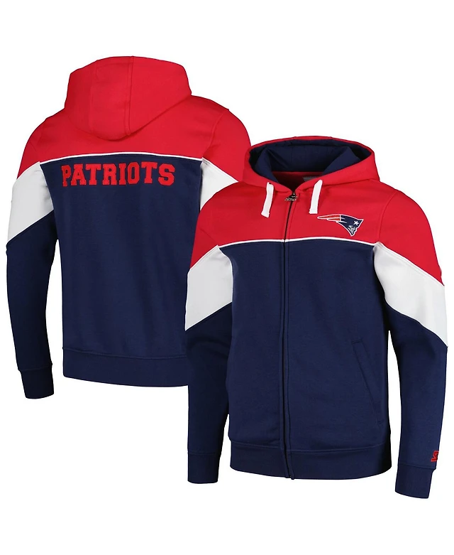 Men's Starter Navy, Red New England Patriots Running Back Full-Zip Hoodie