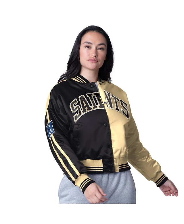 Starter Women's Black/Gold New Orleans Saints Zone Blitz Cropped Full-Snap Satin Jacket