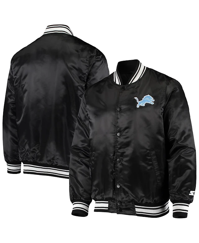 Starter Men's Black Detroit Lions Locker Room Satin Varsity Full-Snap Jacket