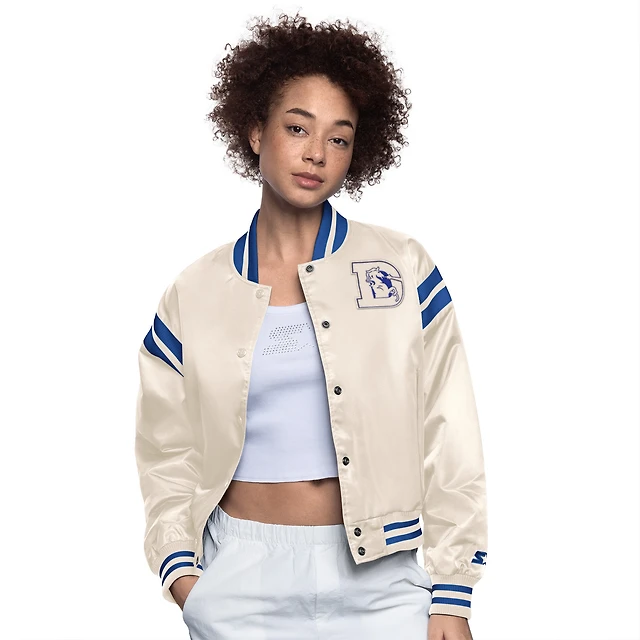 Women's Starter Gold/Navy Denver Nuggets Zone Blitz Cropped Full-Snap Satin Jacket