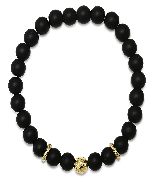 Steeltime Men's 14K Gold Plated Sterling Silver and Black Lava Beaded Stretch Bracelet