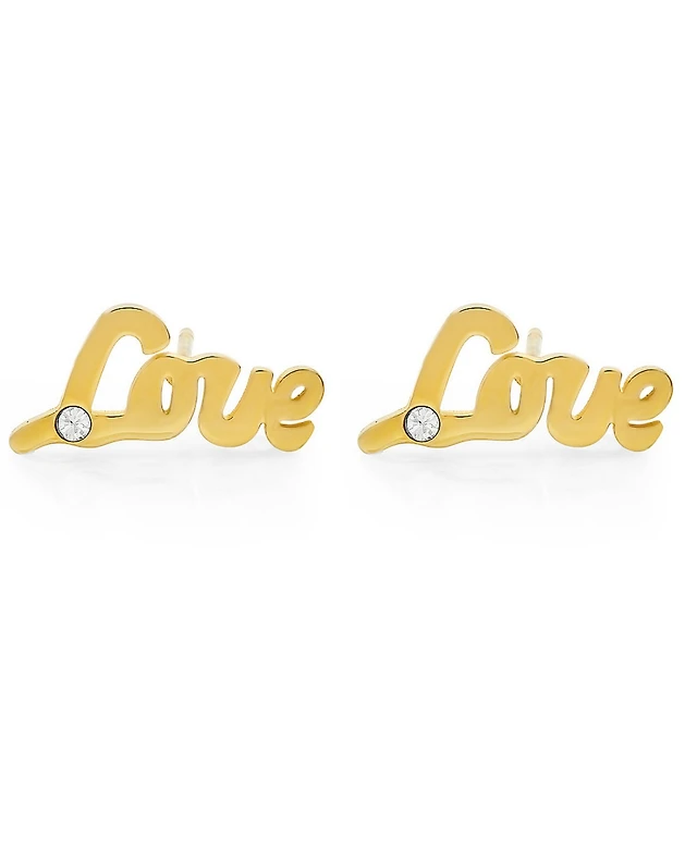 Steeltime 18K Gold Plated Stainless Steel Peace Love Drop Necklace with Heart Charm