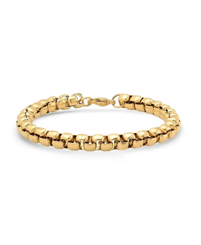 Steeltime Men's 18K Gold Plated Stainless Steel Thick Round Box Link Bracelet