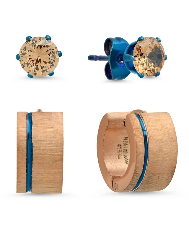 Steeltime Women's Stainless Steel 2 Pieces Simulated Diamond Stud and Simulated Diamond Huggie Earrings Set