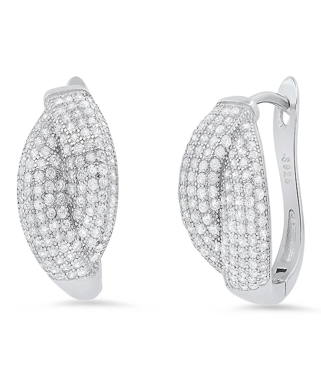 Steeltime Women's Sterling Silver and Multi-Row Simulated Diamonds Hoop Huggie Earrings