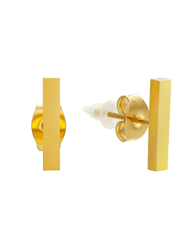 Steeltime Stainless Steel 18K Gold Plated Small Bar Stud Earrings