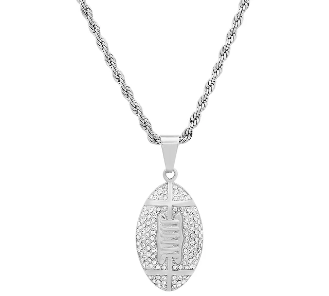 Steeltime Men's Crystal American Football 24" Pendant Necklace