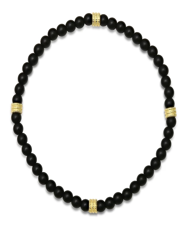 Steeltime Men's 14K Gold Plated Sterling Silver and Black Lava Beaded Stretch Bracelet