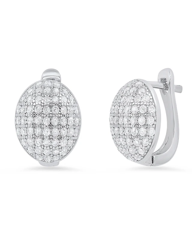Steeltime Women's Sterling Silver and Simulated Diamonds Oval Layered Huggie Earrings