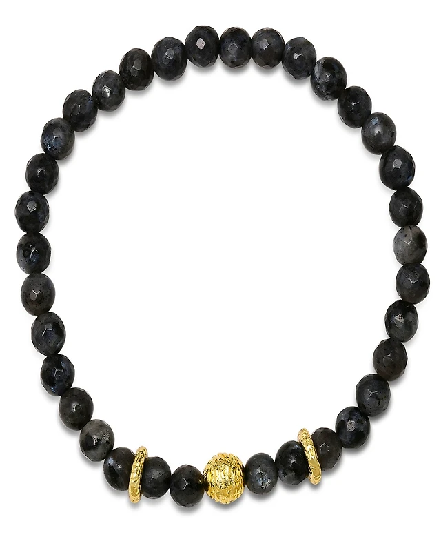 Steeltime Men's 14K Gold Plated Sterling Silver and Gray Agate Beaded Stretch Bracelet