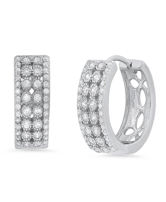 Steeltime Women's Sterling Silver and Multi-Row Simulated Diamonds Hoop Huggie Earrings