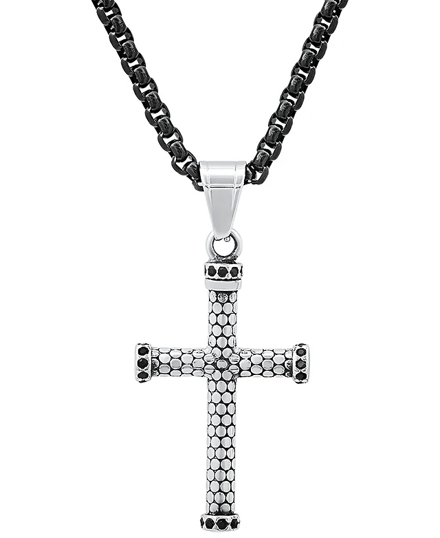 Steeltime Men's Two-Tone Stainless Steel Simulated Black Diamond Cross 24" Pendant Necklace