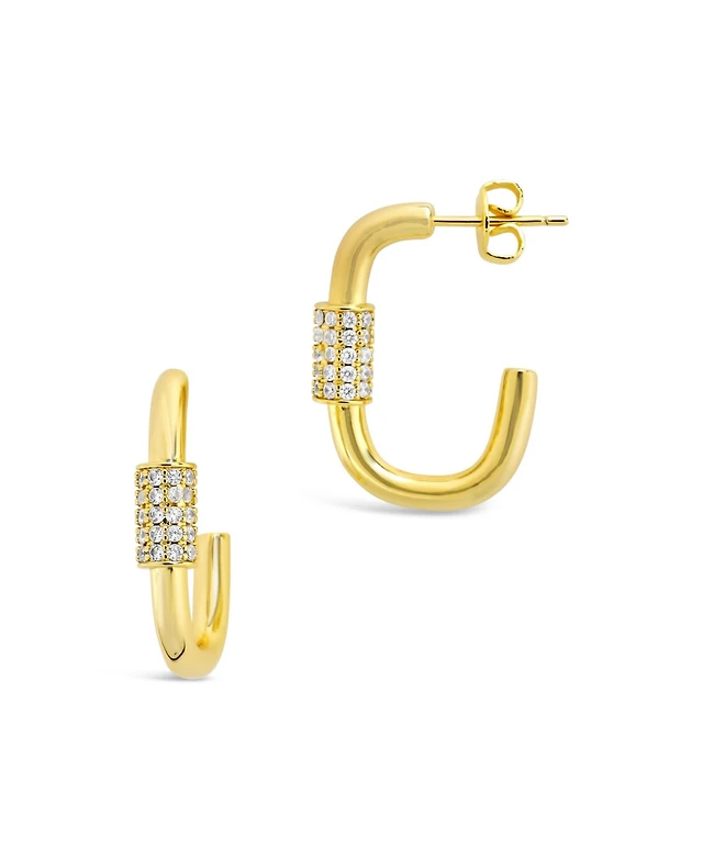Sterling Forever Square Cubic Zirconia Carabiner Clip Huggie Hoop Earrings