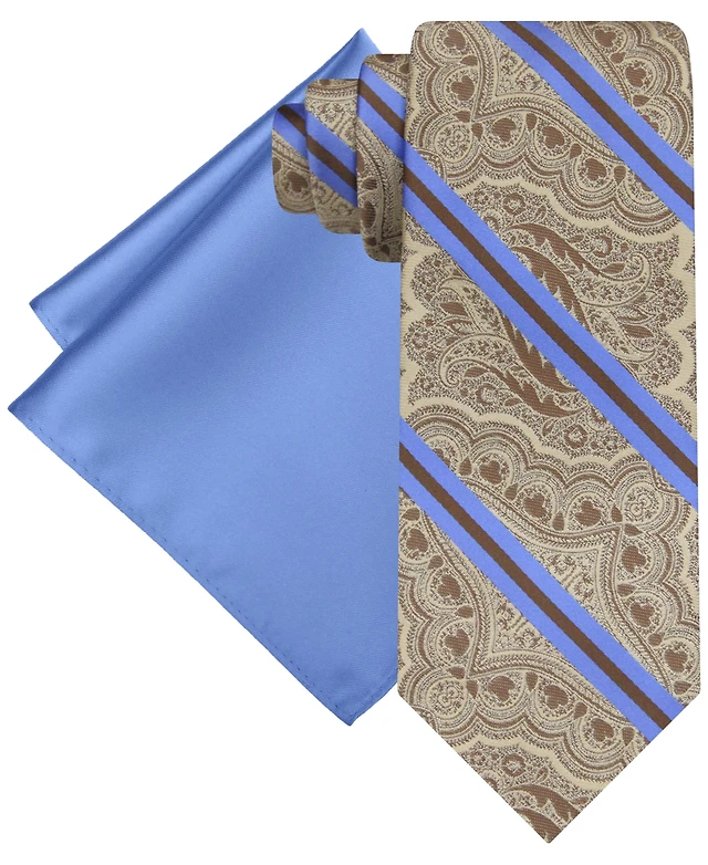 Steve Harvey Men's Stripe Paisley Tie & Solid Pocket Square Set