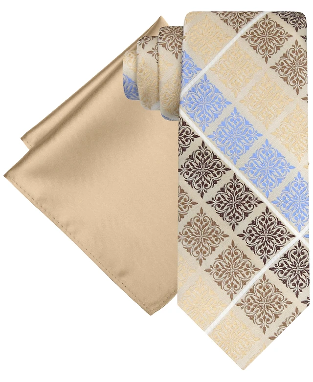 Steve Harvey Men's Medallion Tie & Solid Pocket Square Set