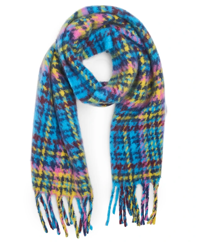Steve Madden Women's Color Blocked Out Plaid Fringe Scarf