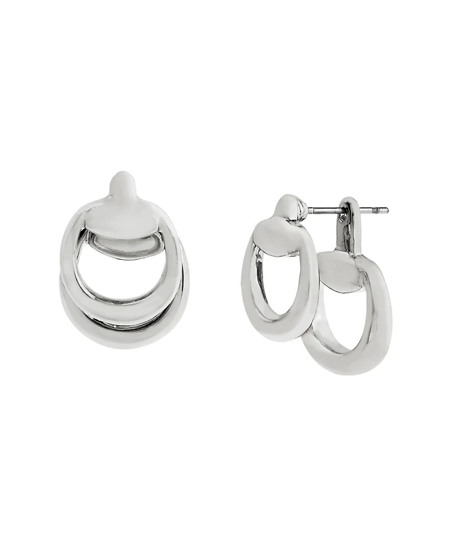 Steve Madden Rhodium Collegiate C Link Hoop Earrings