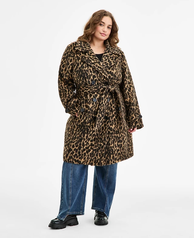 Steve Madden Plus Double-Breasted Belted Trench Coat
