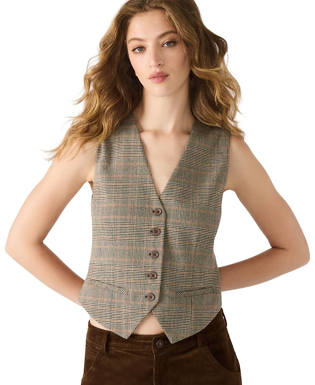 Steve Madden Women's Plaid Detail Barrett V-Neck Top