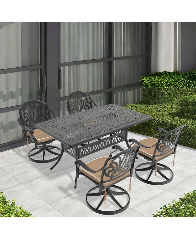 Streamdale 5-Pc Cast Aluminum Dining Set, 4 Swivel Chairs & Rectangular Table, Black Frame