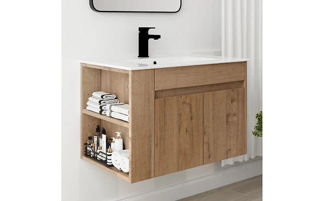 Streamdale 30 Inch Bathroom Vanity With Ceramic Basin And Adjust Open Shelf