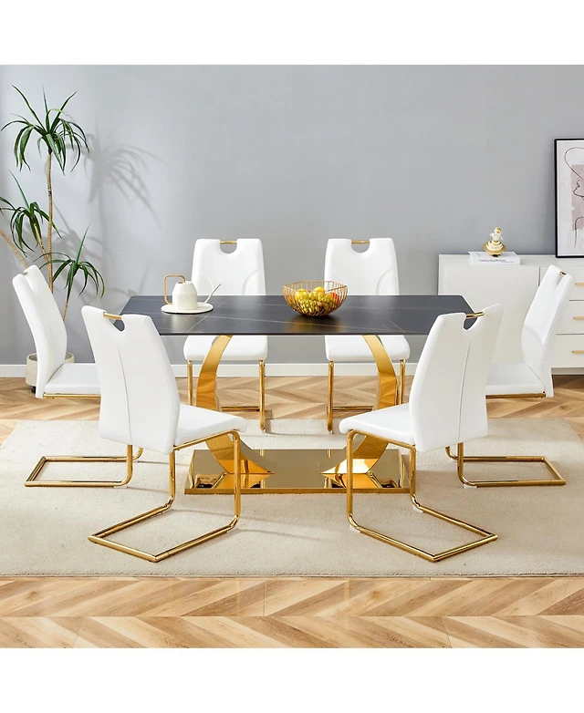 Streamdale Black Marble-Patterned Dining Table with Golden Butterfly Legs (Heat-Resistant)