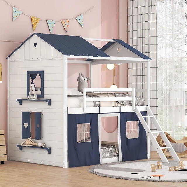 Streamdale Twin Bunk House Bed With Slide And Ladder