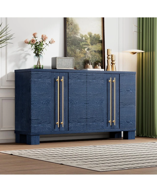Streamdale Retro 4-door Sideboard with Distressed Finish and Adjustable Shelves for Dining Room, Kitchen, and Living Room (Navy)